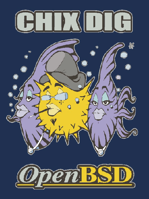 Front of T-shirt contains a picture of the Blowfish, and a vague reference to how using the blowfish cipher for the OpenBSD password hash makes our password mechanism more secure (blowfish, not babblefish). People won't be able to crack your passwords anymore... Back of T-shirt contains the complete source code for our version of the Blowfish algorithm (written in Germany). For more information see our cryptography page...