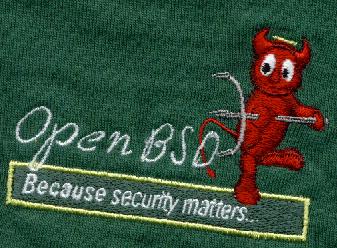 These T-shirts had an OpenBSD-style daemon stitched into the right chest area. The T-shirts were made out of really nice green cloth.