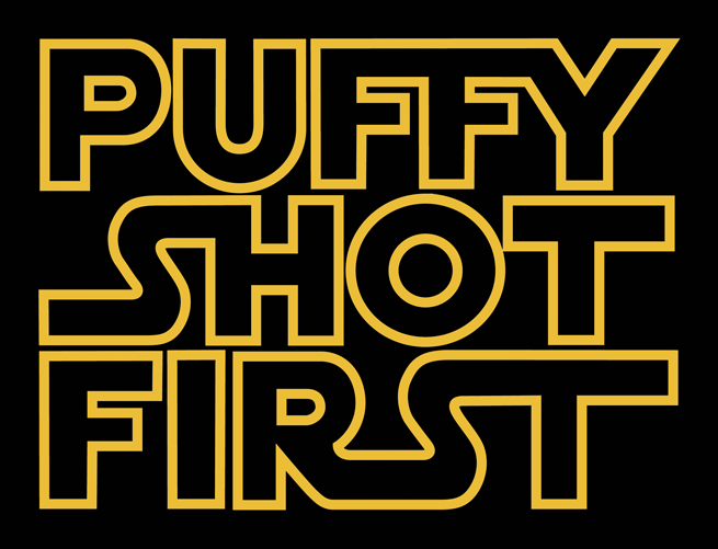 The front features the 3.2 poster artwork, The back features Puffy, Agent 077, delivering his "secure not stirred darling" line.